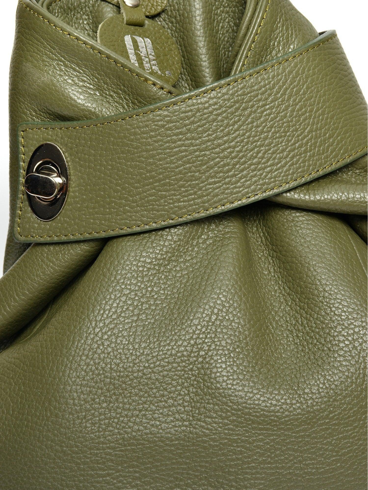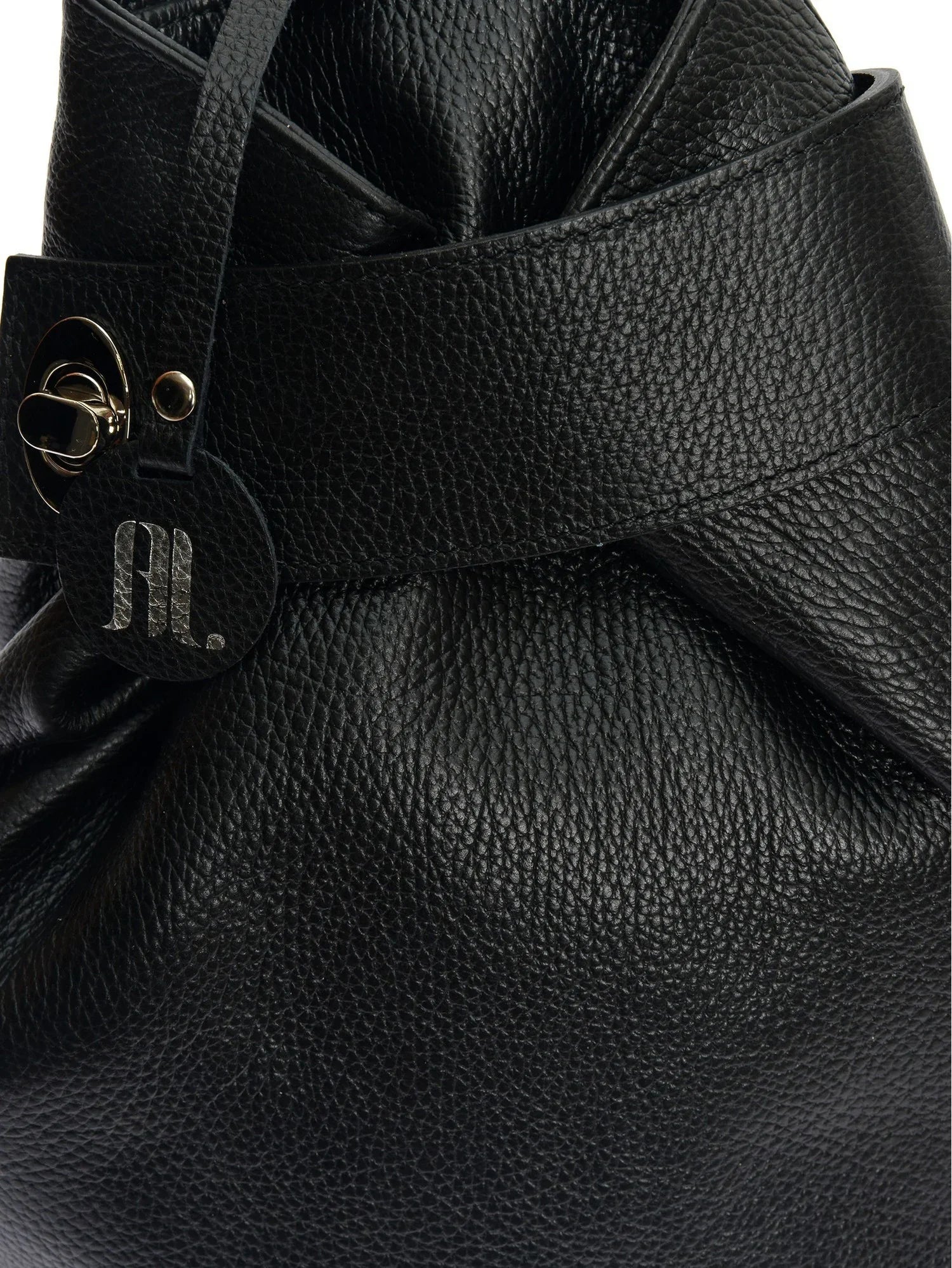 Ein praktischer Rucksack aus feinstem Rindsleder mit seitlichem Klappverschluss und Drehverschluss. Die innere Ledertasche und die Reißverschlusstasche hinten bieten sichere Aufbewahrung für Ihre Wertsachen.