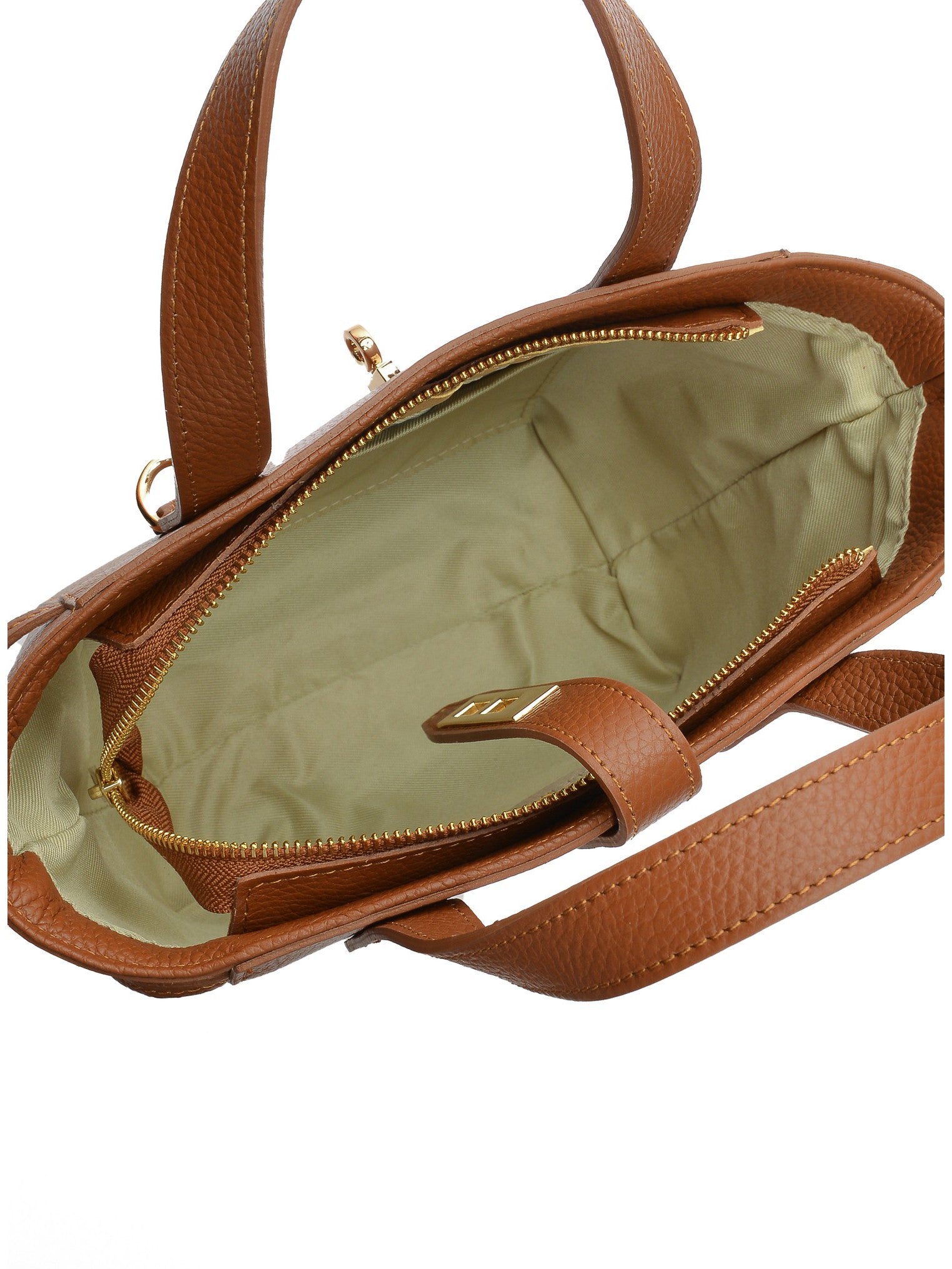Eine kompakte Handtasche aus feinstem Rindsleder mit elegantem Metallschnallen-Detail. Die innere Reißverschlusstasche und Einstecktasche bieten perfekte Organisation.