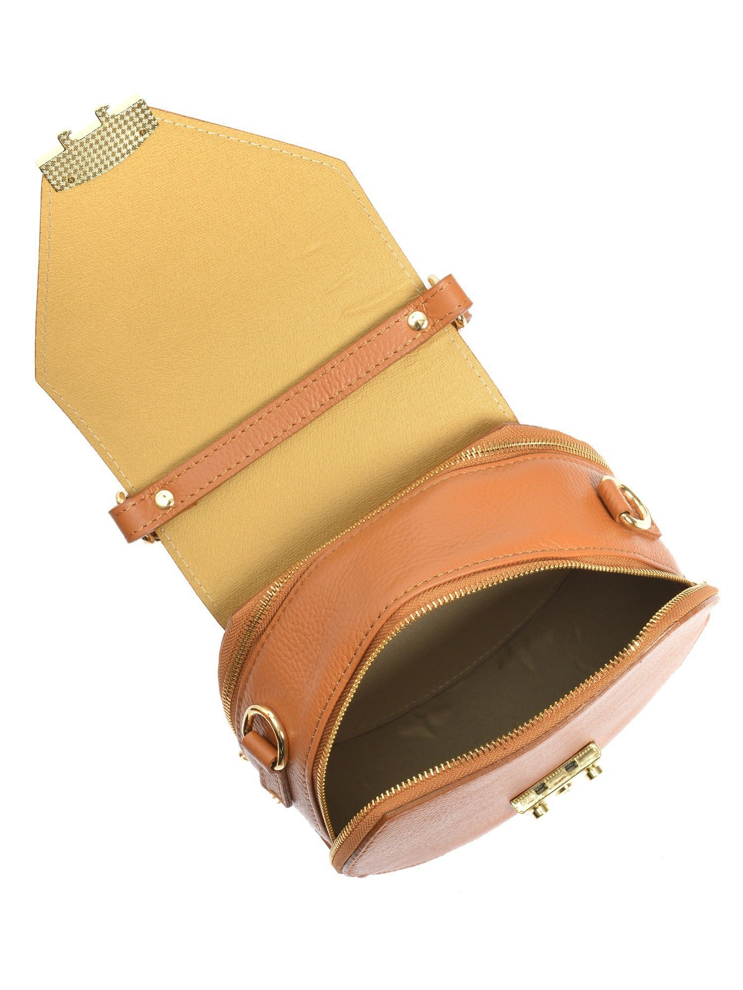 Eine elegante Handtasche aus feinstem Rindsleder mit praktischen inneren Reißverschlussfächern. Die Nietenfüße und der verstellbare Schulterriemen machen diese Tasche zum perfekten Begleiter für jeden Anlass.