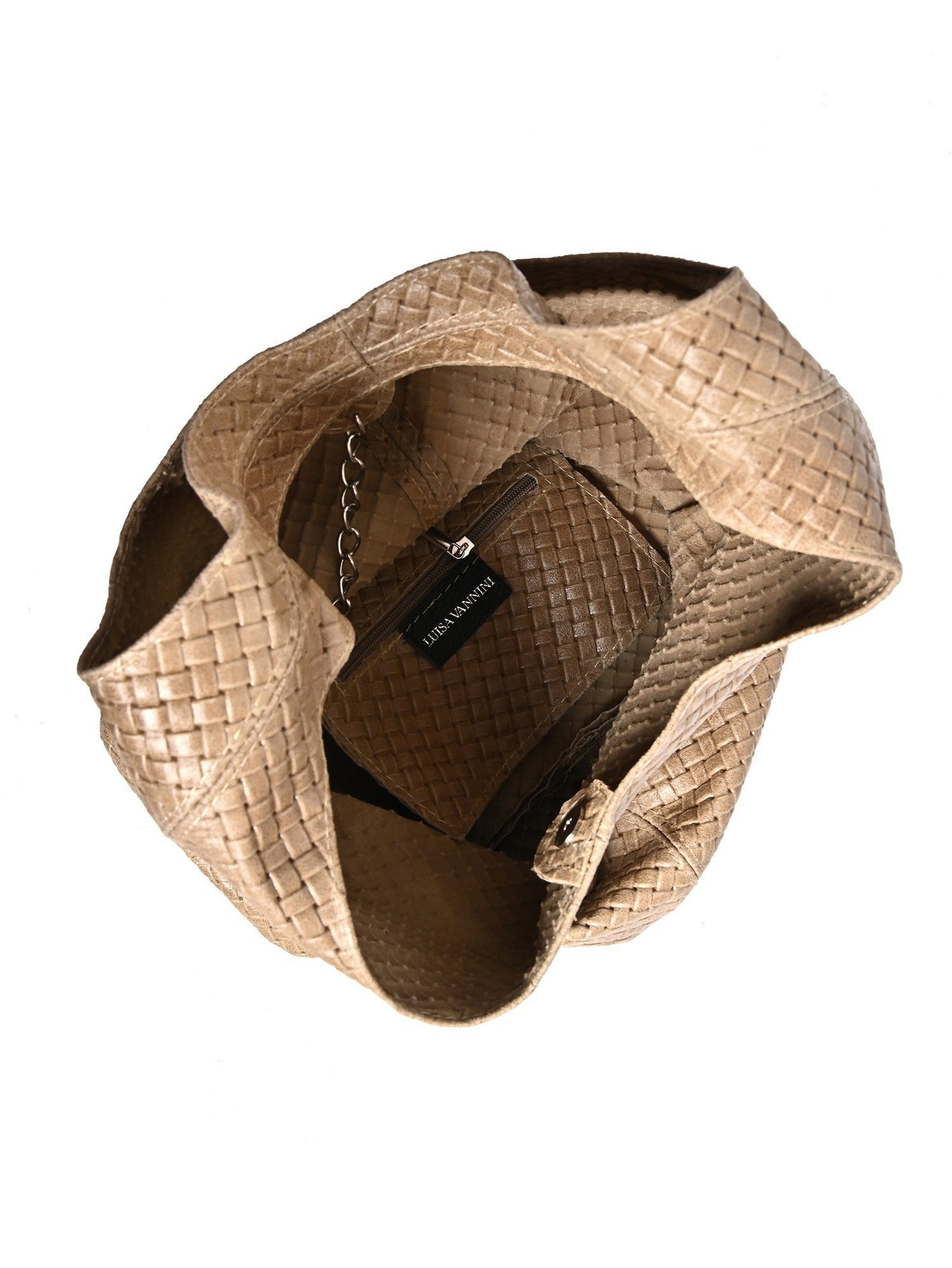 Eine geräumige Shopper-Tasche aus feinstem Rindsleder mit praktischem Druckknopfverschluss. Die angehängte Geldbörse mit Reißverschluss macht diese Tasche zum perfekten Begleiter für Shopping und Alltag.