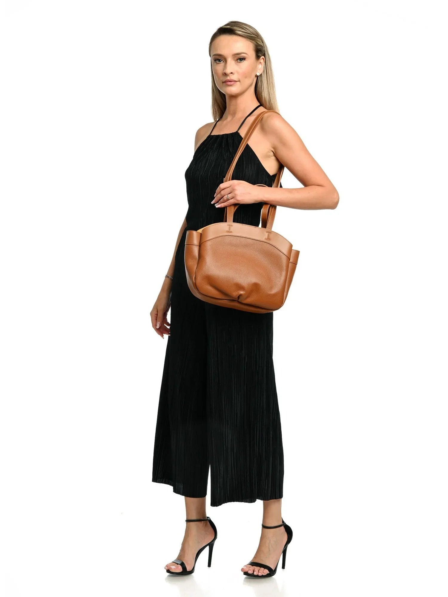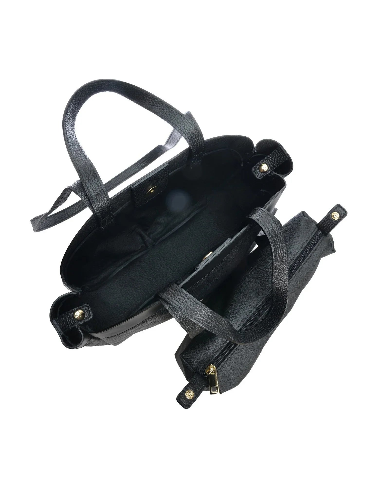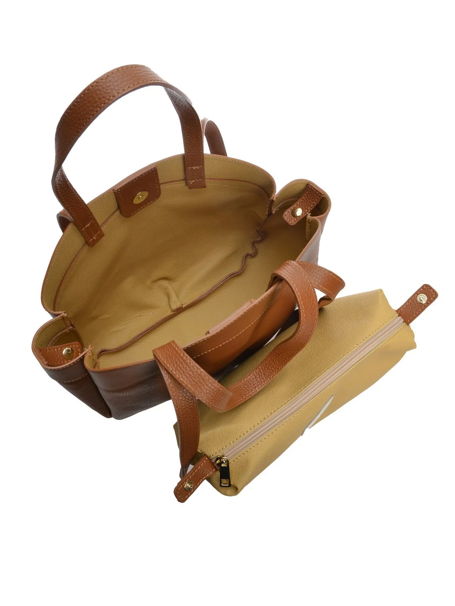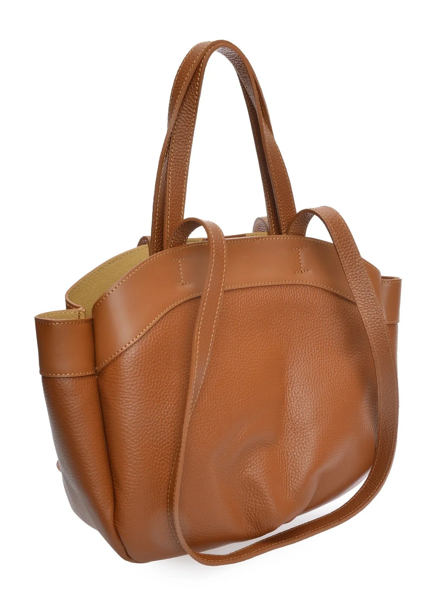 Eine praktische Umhängetasche aus feinstem Rindsleder mit herausnehmbarer Reißverschlusstasche. Der Magnetverschluss und die zwei Henkel bieten vielseitige Tragemöglichkeiten für jeden Tag.