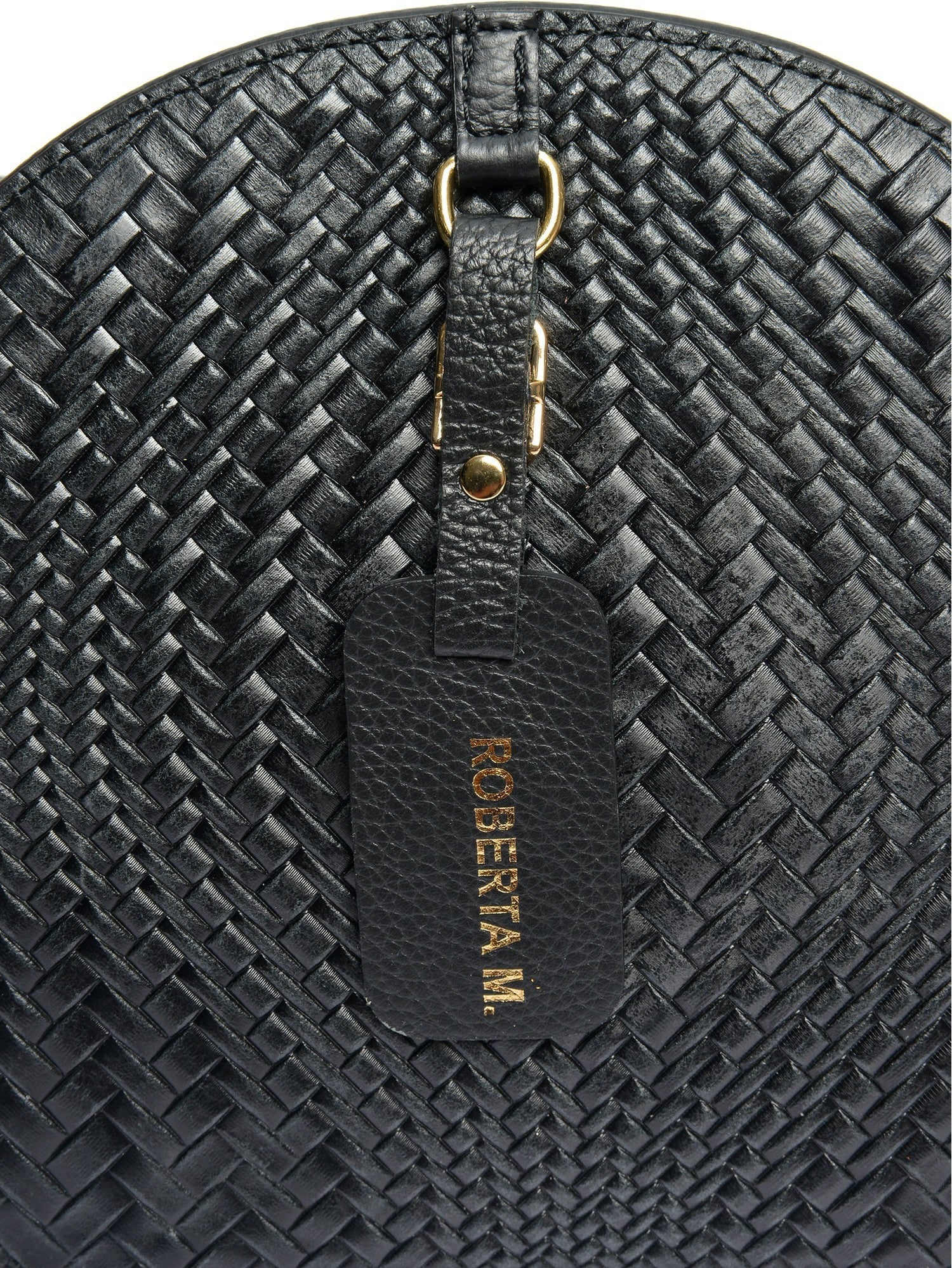 Eine stilvolle Schultertasche aus feinstem Rindsleder mit elegantem Flechtdesign. Das Etikett-Schnallendetail und die Nietenfüße verleihen dieser Tasche einen einzigartigen Look.