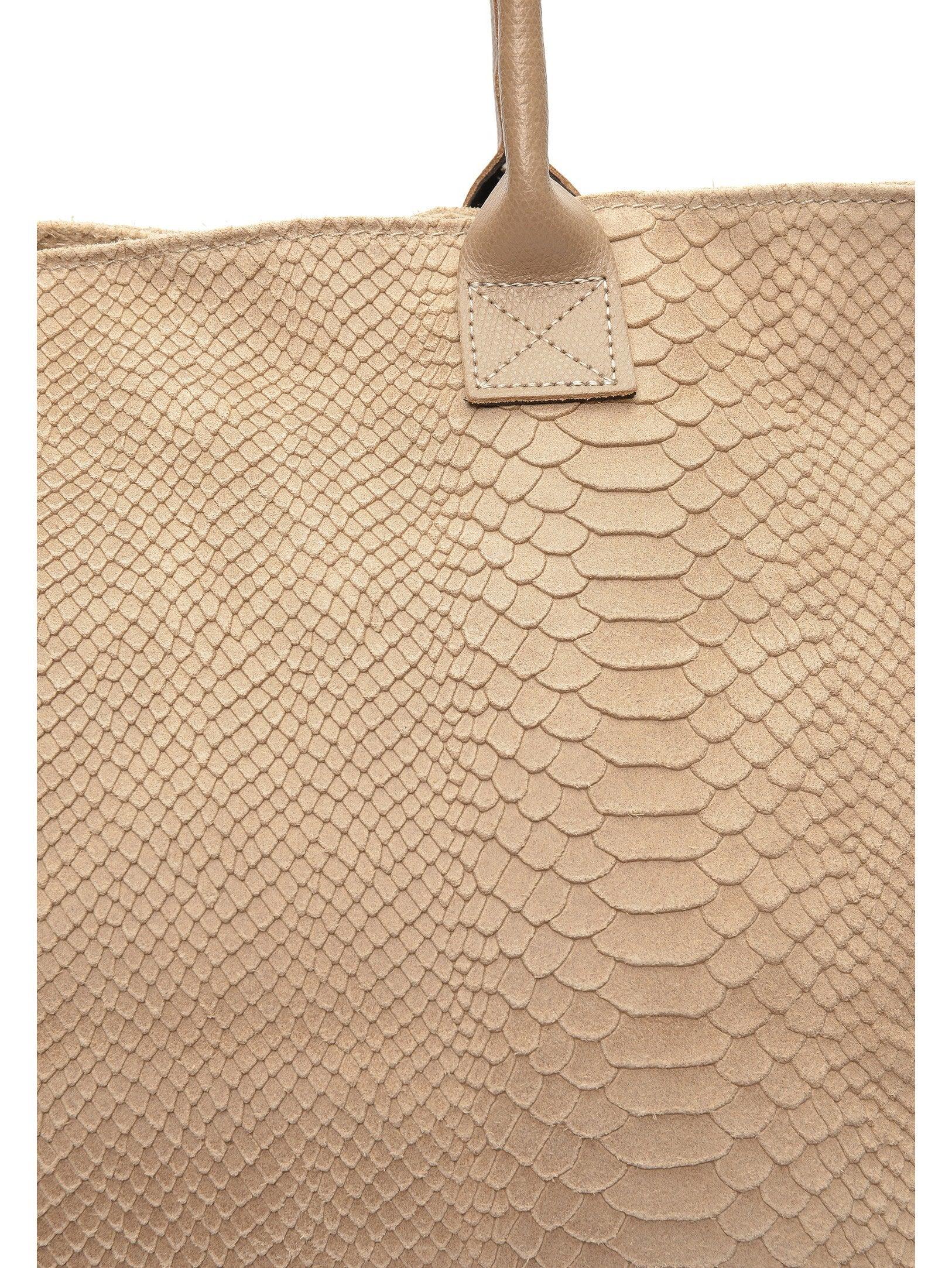 Eine elegante Handtasche mit Henkel aus luxuriösem Wildleder mit genarbtem Lederbesatz. Das stoffgefütterte Innenfutter und der verstellbare Schulterriemen machen diese Tasche zum perfekten Begleiter für jeden Anlass.